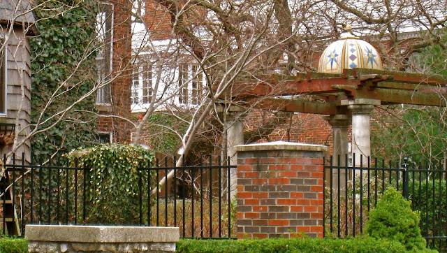 I like this arbor topper better than the porch ornament across the street. Such a decorative neighborhood.